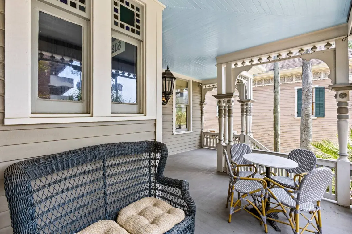 🌿 Front porch seating + outdoor dining
