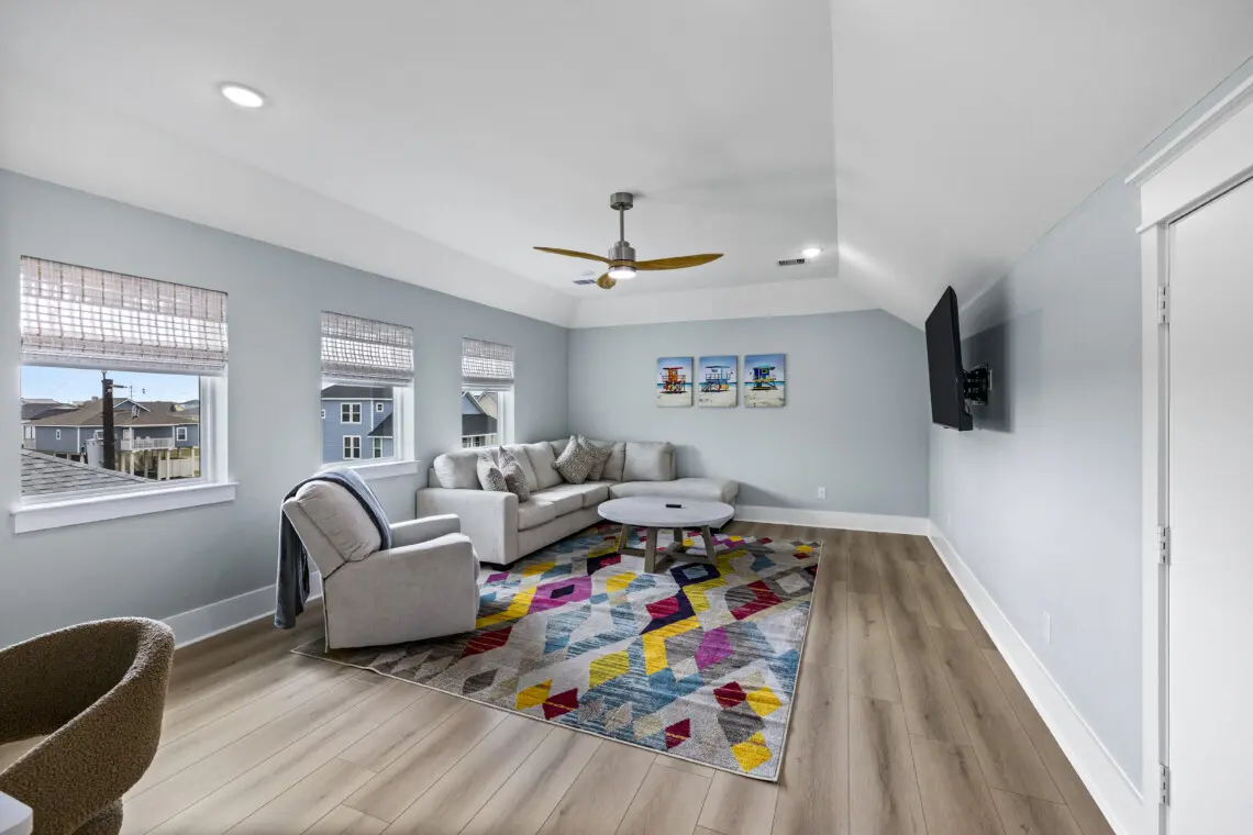 This home sleeps 16 and is set up for big-group comfort, with plenty of space to hang out together and plenty of room to spread out. The main level features a roomy living area plus convenient bedrooms and bathrooms, which makes it a great fit for multi-family trips and group getaways.