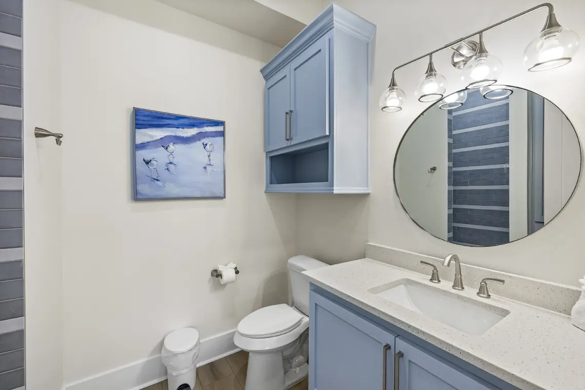 ● Primary bedroom (downstairs): King bed + ensuite bathroom (shower)
