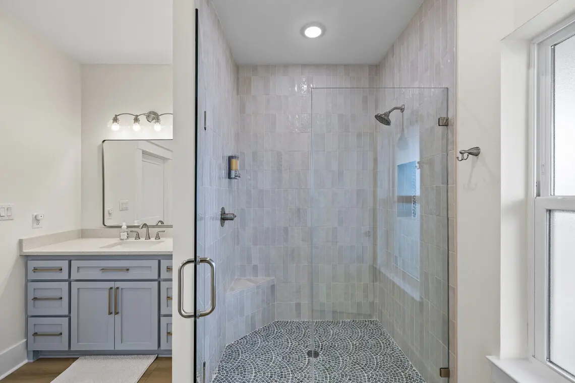 ● Primary bedroom (upstairs): ensuite bathroom with walk-in shower + private balcony