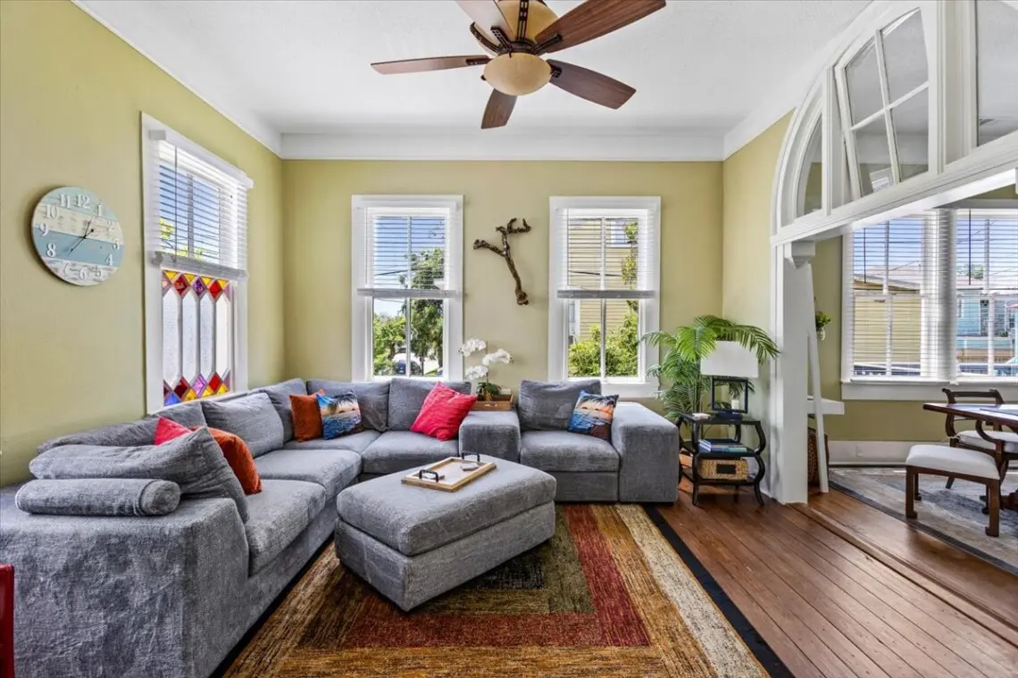 Morning light filters through tall windows as the sound of seagulls drifts in from the Gulf. You can start the day with coffee on the deck, stretch out in the hammock with a good book, or gather in the shaded backyard for a relaxed meal before wandering to the beach. After exploring Galveston’s historic streets, return to a home that balances century-old charm with thoughtful modern comforts.