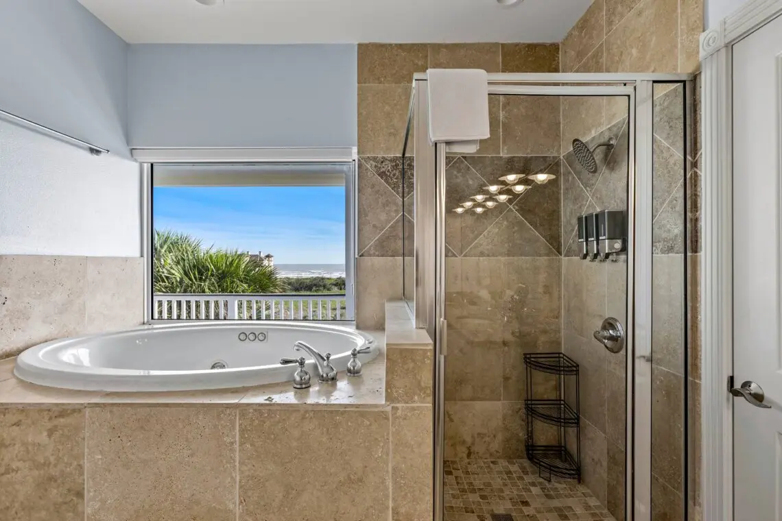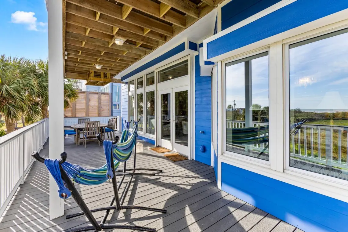 Welcome to Blue Mar, a spacious three-story beach home with big ocean views, multiple decks, and room for the whole crew. With 5 bedrooms, 4 bathrooms, and sleeping space for up to 16, it’s built for multi-family vacations and friend getaways where everyone can spread out, then come back together for meals, movie nights, and time outside. You’re just a short walk to a private beach access point, so beach days are always close. After a day on the sand, come home to grill dinner, play a round of cornhole, and end the night with a soak in the hot tub.