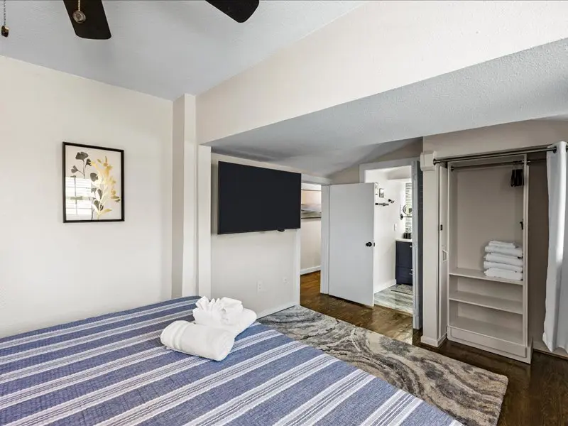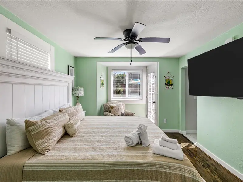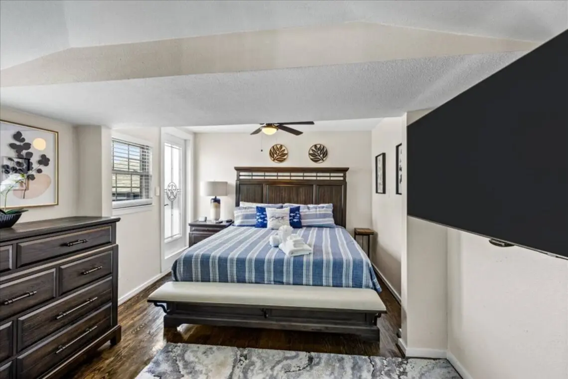 ● Bedroom 1: King bed + ensuite bathroom (spacious walk-in shower) + direct backyard access + TV with streaming