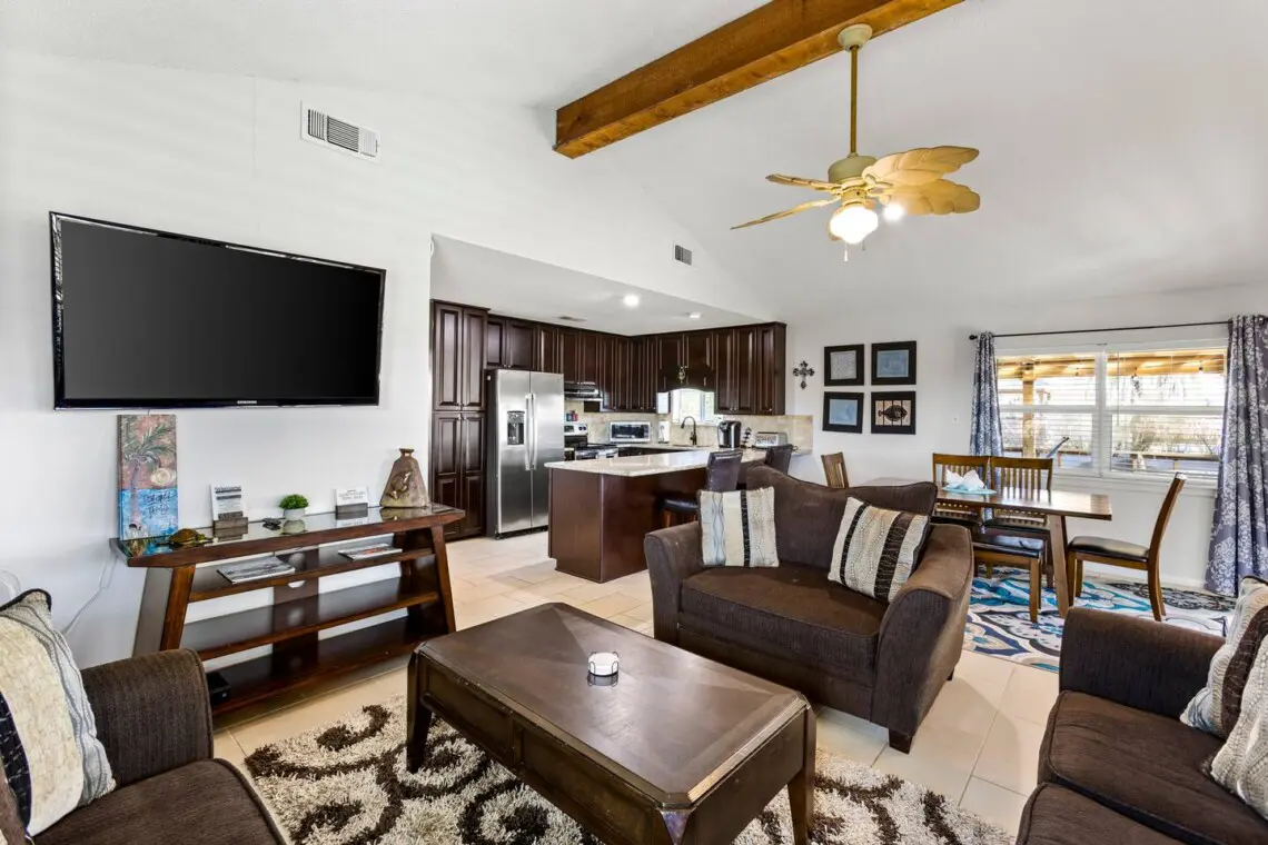 Guests love Dock Holiday for its peaceful canal-front setting, easy access to the bay, and cozy, family-friendly vibe. With kayaks, a boat slip, and all the essentials for a relaxing coastal stay, it’s the perfect home base for fishing trips, water adventures, or quiet weekends by the sea.