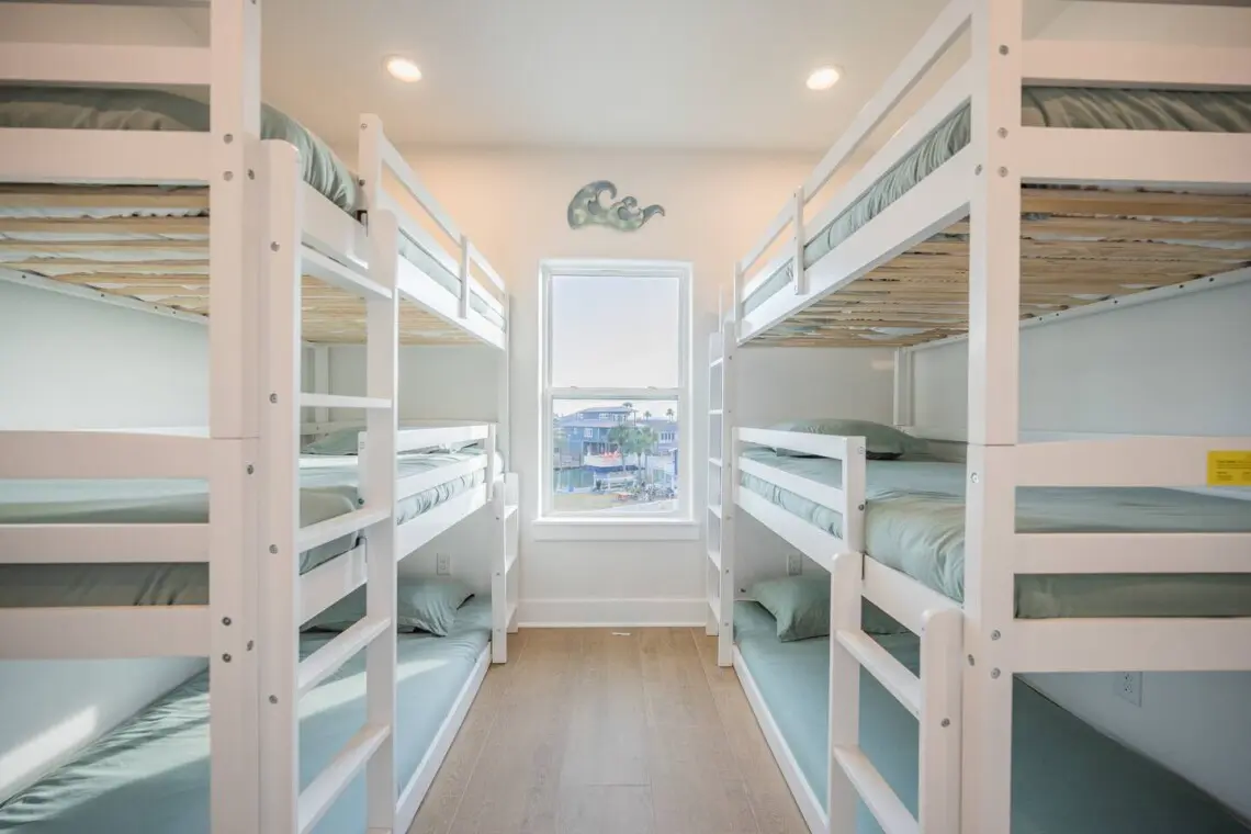 The bunk beds have a weight capacity of 200 pounds for the middle and top bunks. There is also an age minimum of 6 years old for the top bunk. And please no jumping or rough housing on the bunk beds.